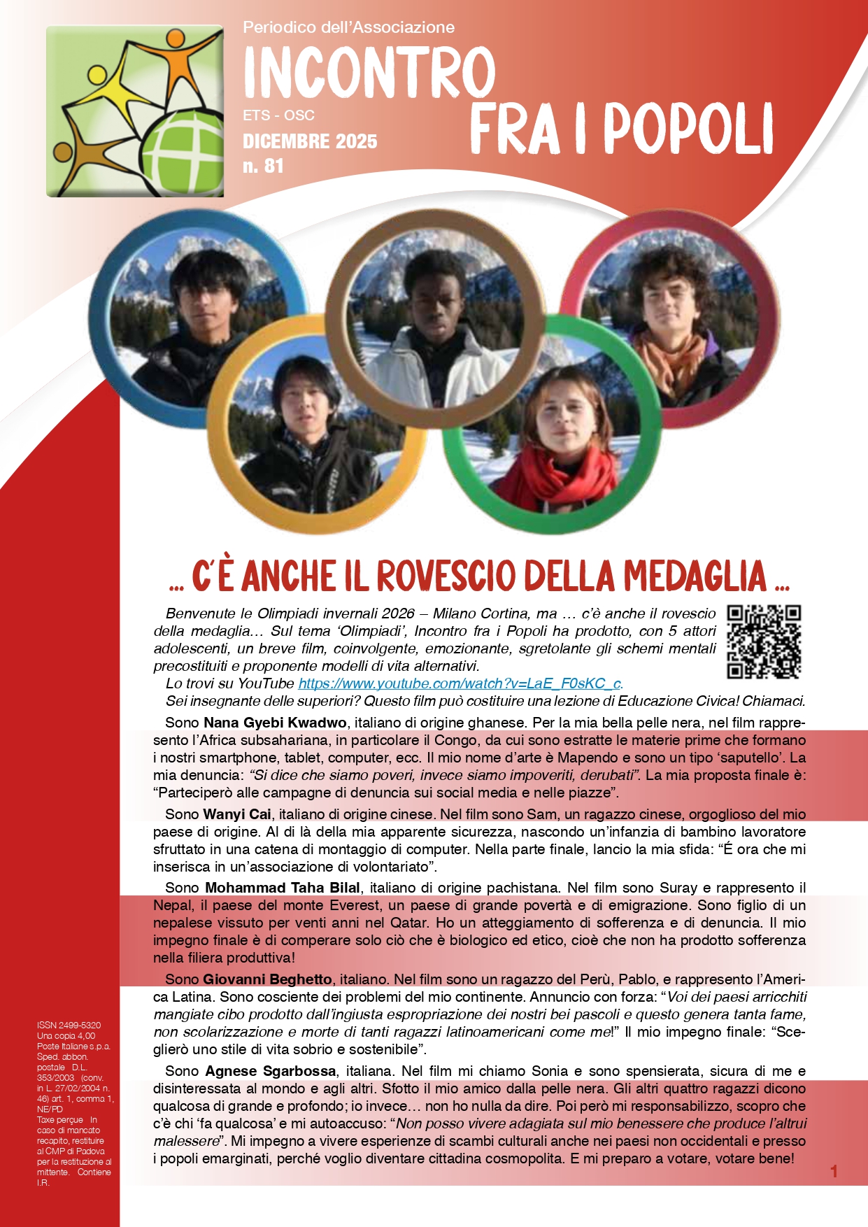 Ecco il giornalino di dicembre 2025 di Incontro fra i Popoli. …c’è anche il rovescio della medaglia… Badilika – mai più malnutrizione La “deliziosa pappetta del mattino” Creiamo futuro! – sostegno a distanza – Cantieri di pace Incontro fra i Popoli compie 35 anni e ha trovato casa Grazie Signora Assunta